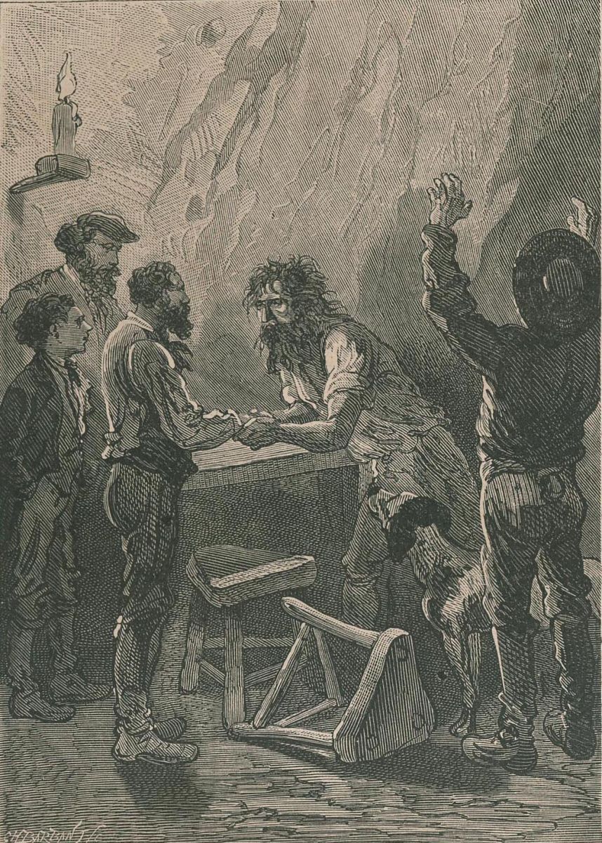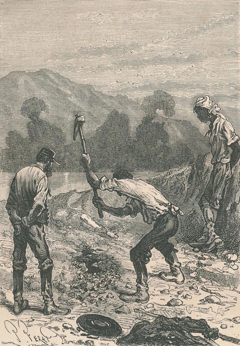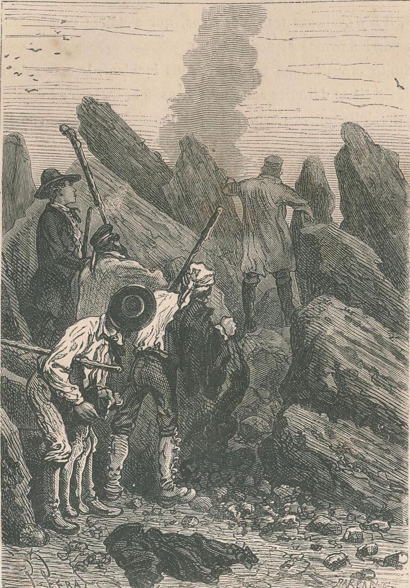 Pencroff, armé d'un pic.... |