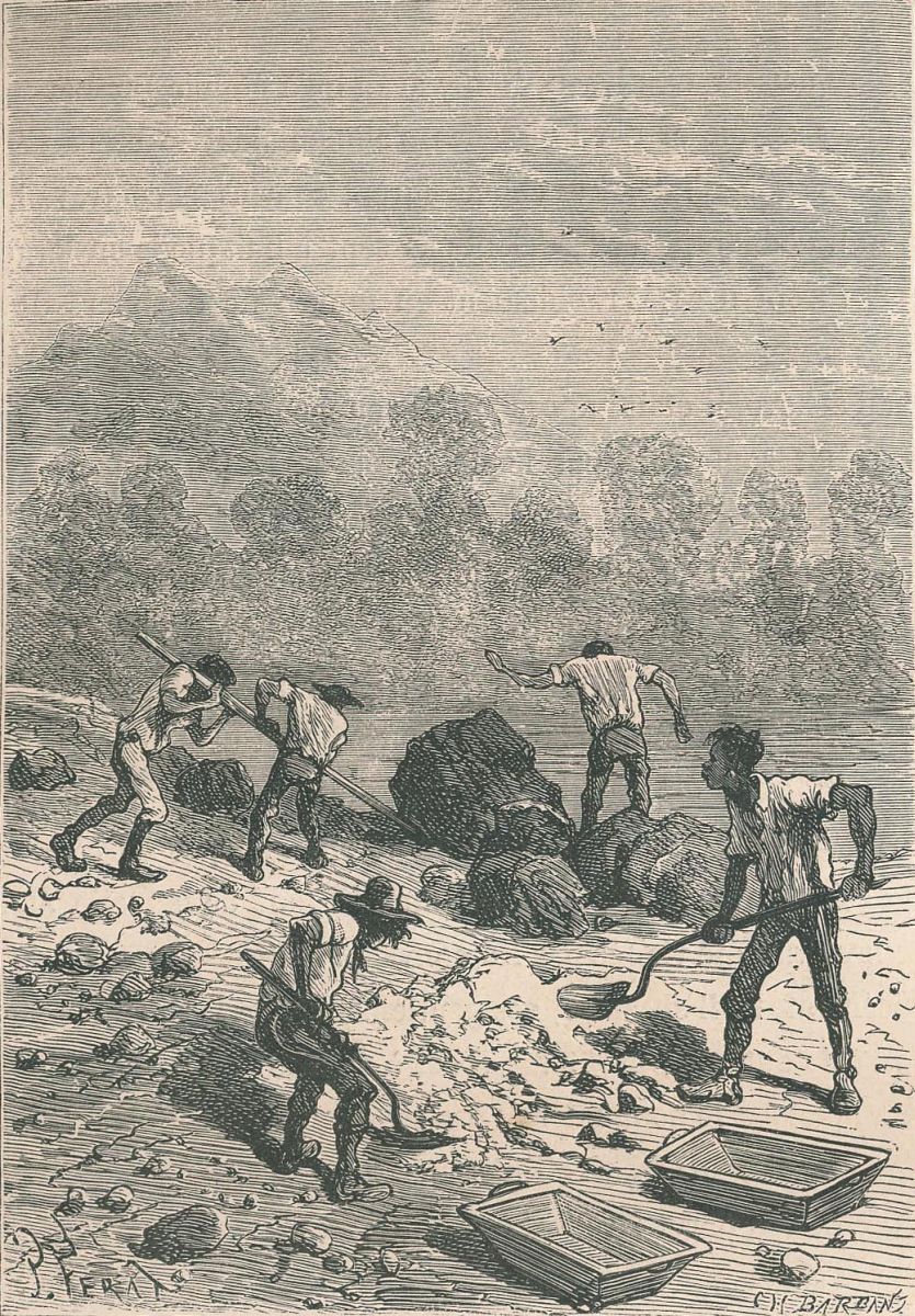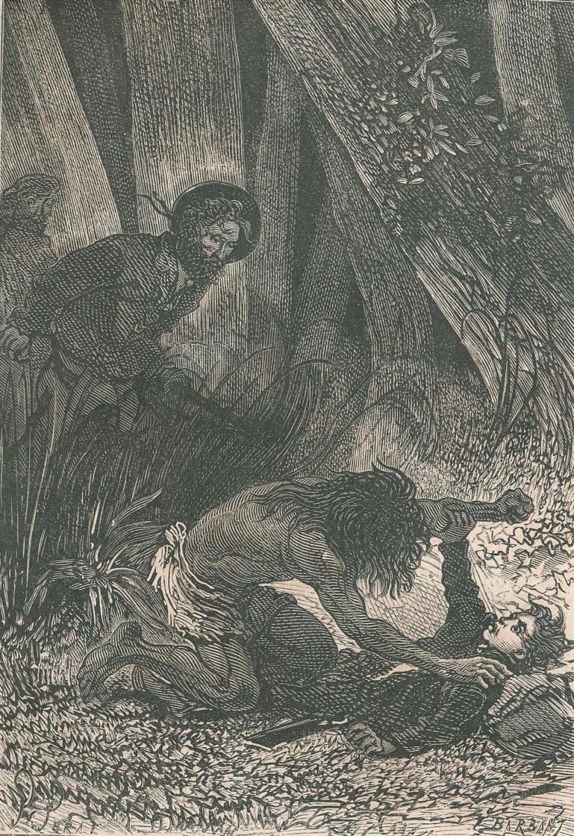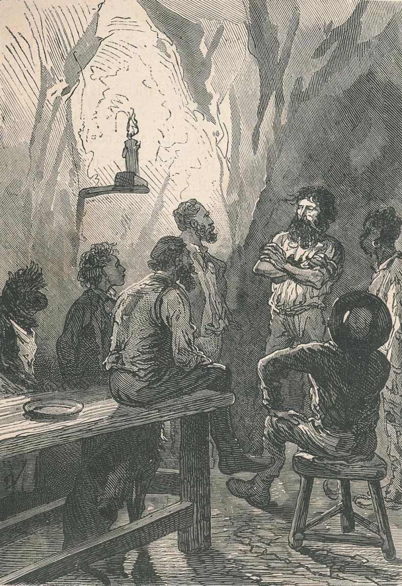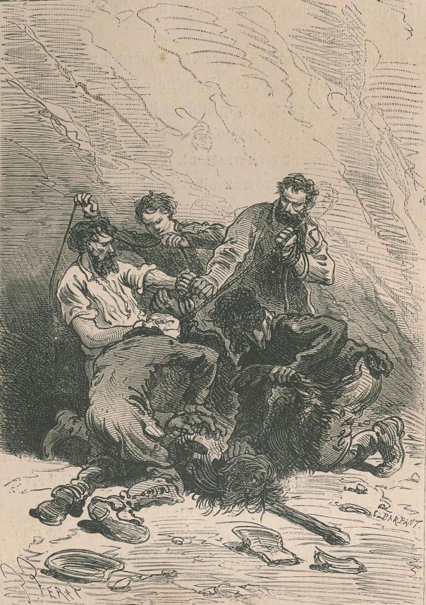 Pencroff, armé d'un pic.... |