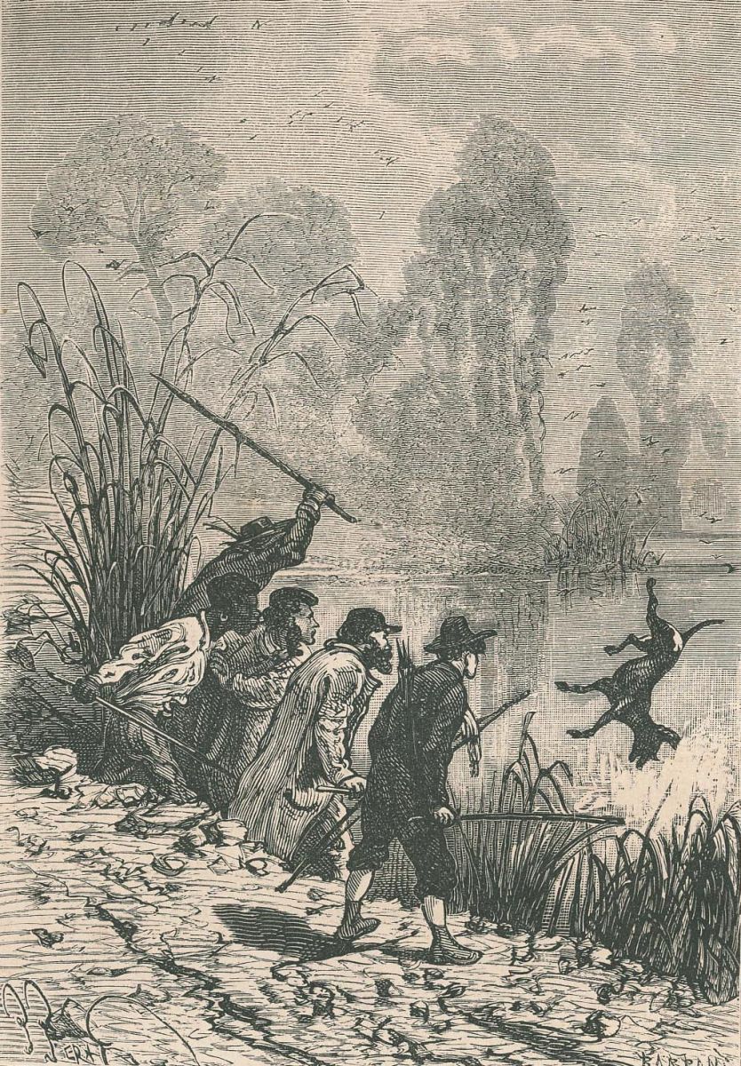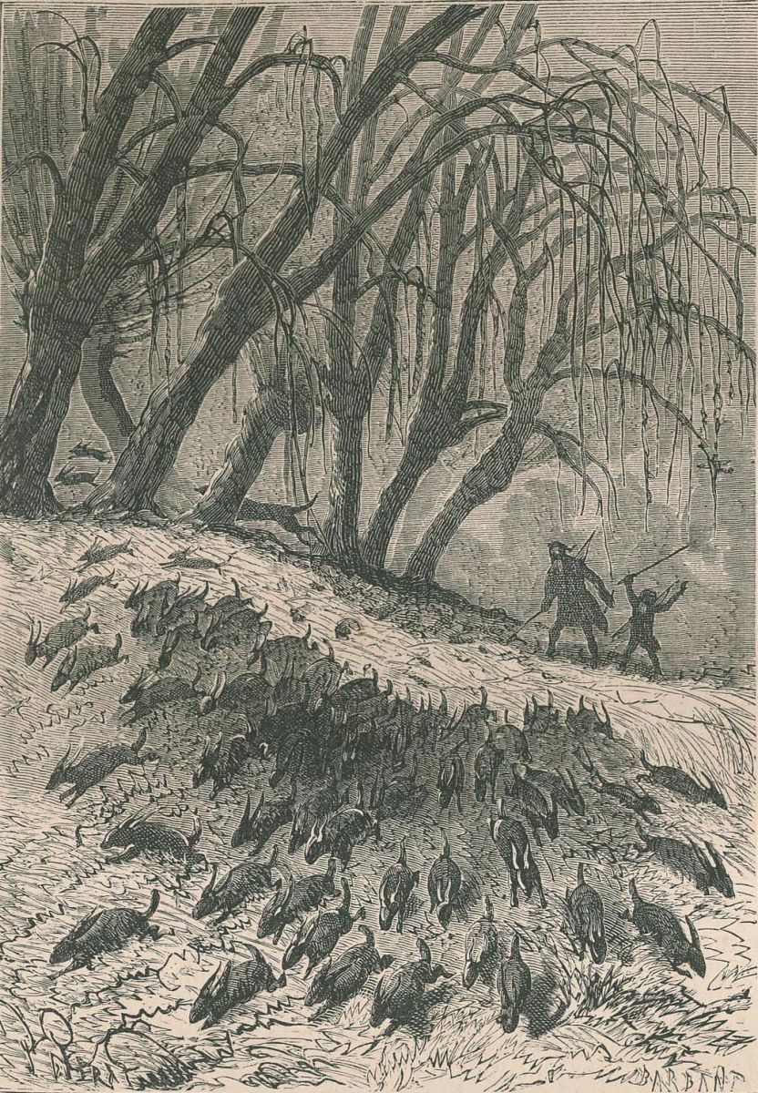 Pencroff remarqua des passées fraîches d'animaux. |