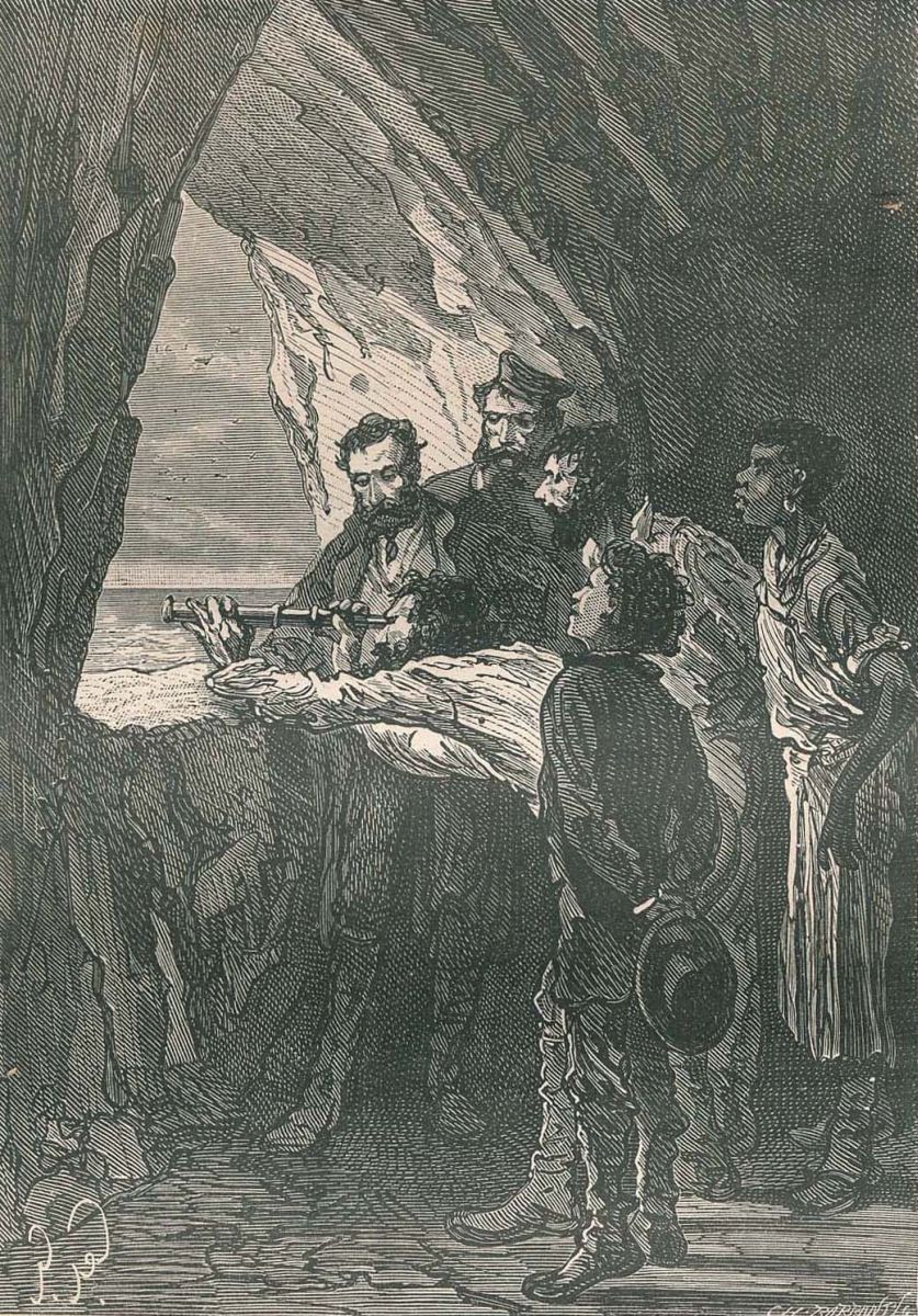 Cyrus Smith, élevant la main... |