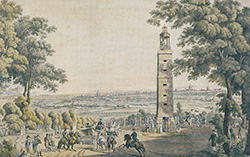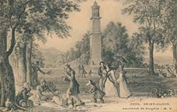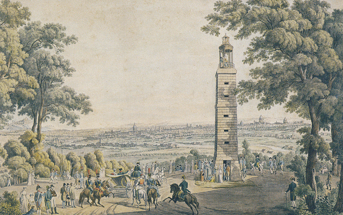 Lors d’une balade dans le parc, si vous vous tenez sur la terrasse du château et regardez vers le sud, vous apercevrez une allée tracée en rebord de plateau, grimpant jusqu’au Rond-point de la Balustrade qui offre une vue dégagée sur toute la capitale… Ce que l’on ignore souvent, c’est que de 1803 à 1870, s’y élevait une imposante tour carrée sur laquelle était montée une réplique en terre cuite d’un édifice réalisé au IVe siècle avant J.-C. au pied de l’Acropole, la « Lanterne de Démosthène ». C’est lors d’un séjour en Grèce que le comte de Choiseul-Gouffier fit copier la jolie lanterne, monument chorégique, élevé par La lanterne de DémostèneLysicrate de Cycine à Athènes. Les plâtres furent apportés à Paris, et une copie en terre cuite, parfaitement exécutée par les frères Trabucci, fut jugée digne de figurer à l’Exposition des produits de l’industrie française (ancêtre des expositions universelles) de 1802 et obtint même une médaille d’argent. Sous le charme, Joséphine convainc alors Napoléon Ier de faire installer cette reproduction à Saint-Cloud. En un temps record, l’architecte du château, Pierre Fontaine, construit donc sur le point culminant du parc, à 92 mètres de hauteur, une grande tour carrée en forme d’obélisque se rétrécissant vers le tiers de sa hauteur et supportant une rotonde à colonnades : ainsi vit le jour celle qu’on surnommait la « Lanterne de Démosthène ».