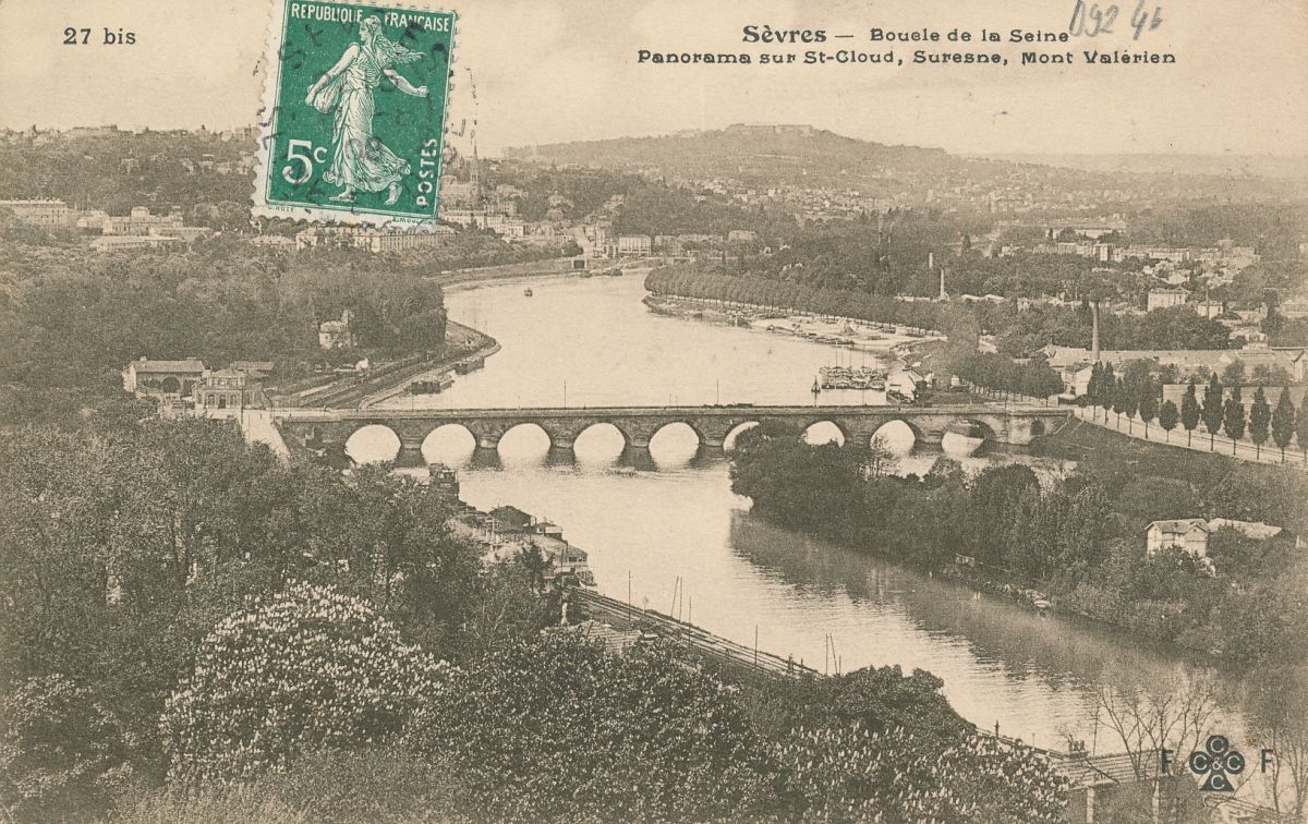 Saint Cloud, vue prise par le pont de Sèvres. |