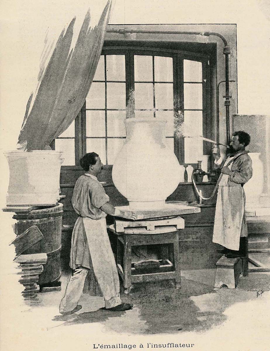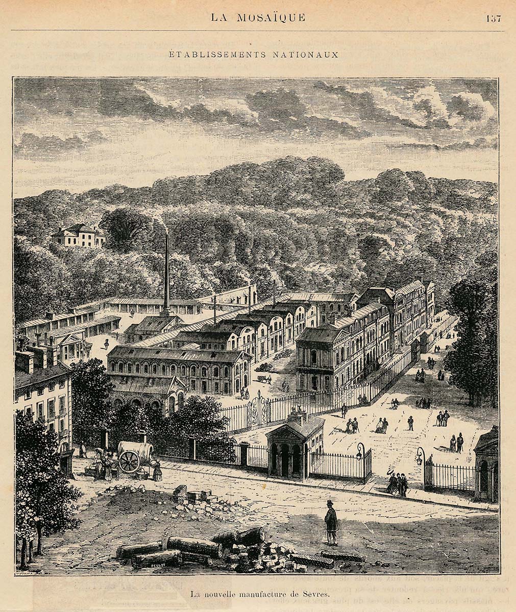 Alexandre Brongniart minéralogiste (1770-1847), En 1800, après la publication de son ouvrage, Mémoire sur l'art de l'émailleur, Claude Berthollet le fait nommer directeur de la Manufacture de porcelaine de Sèvres, poste qu'il conserve jusqu'à sa mort en 1847. Comme directeur de la manufacture de Sèvres, il renouvelle et perfectionne l'industrie de la peinture sur verre, que l'on croyait perdue, et crée le Musée céramique, dont il publie la Description avec Denis Désiré Riocreux (1791-1872). Il fera notamment venir Jean-Charles Develly à la Manufacture.