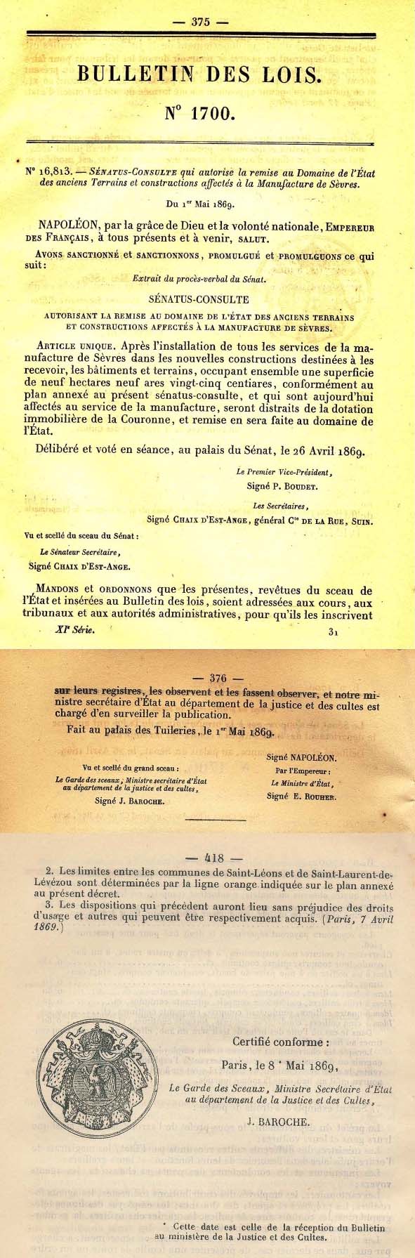 Sèvres le 1er avril 1886 |